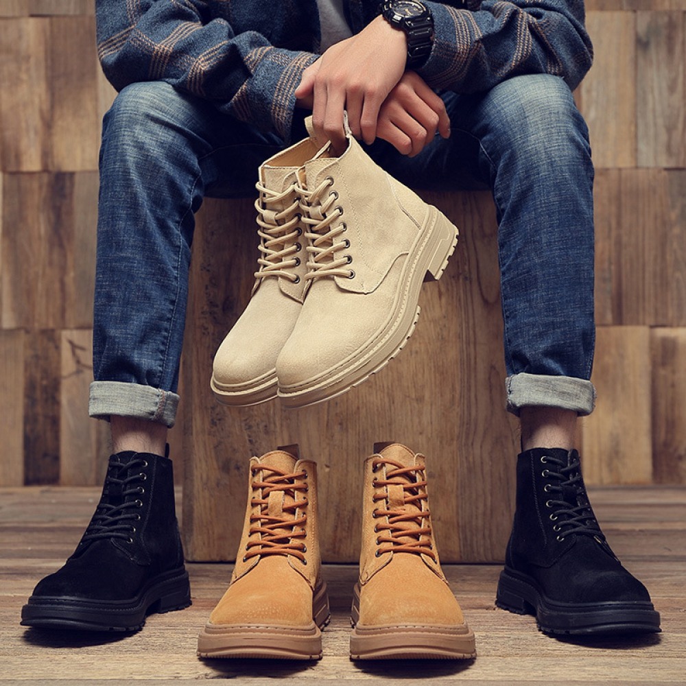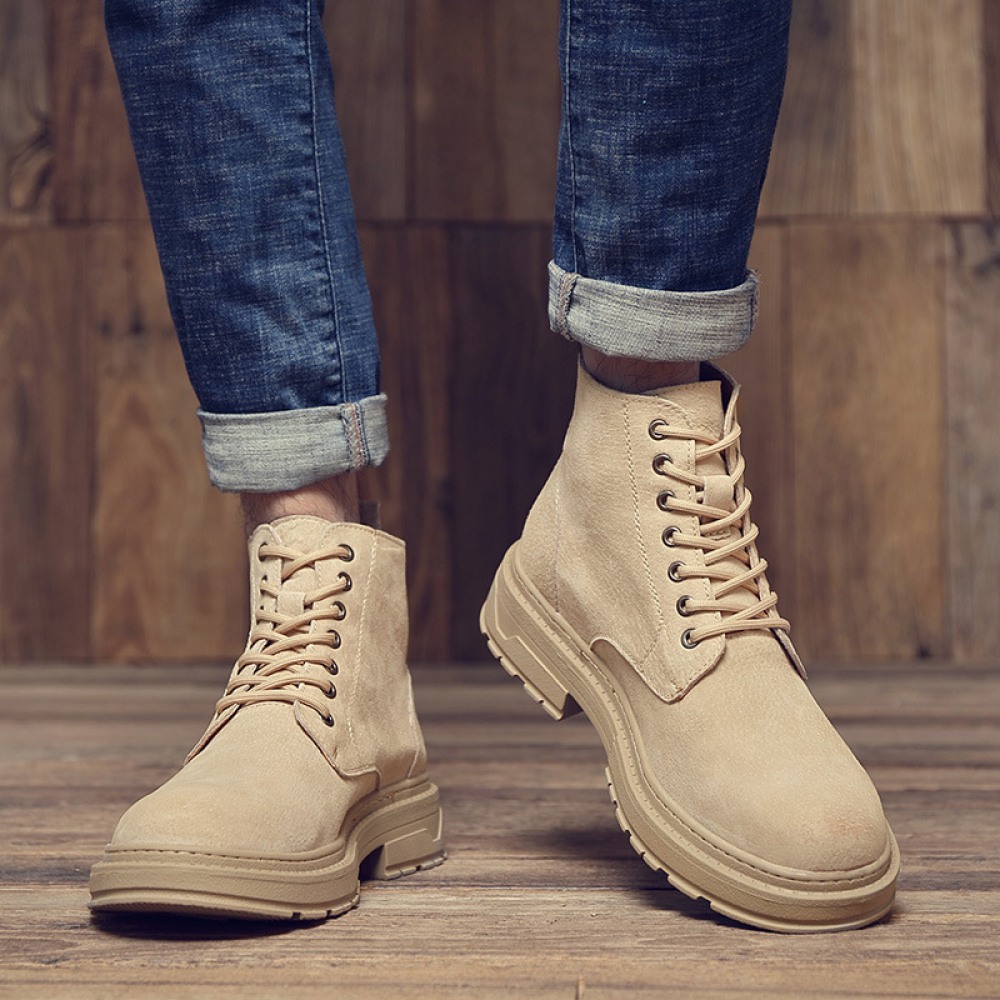New Men's British Style Leather Tooling Martin Boots High-Top Trend Desert Military Boots