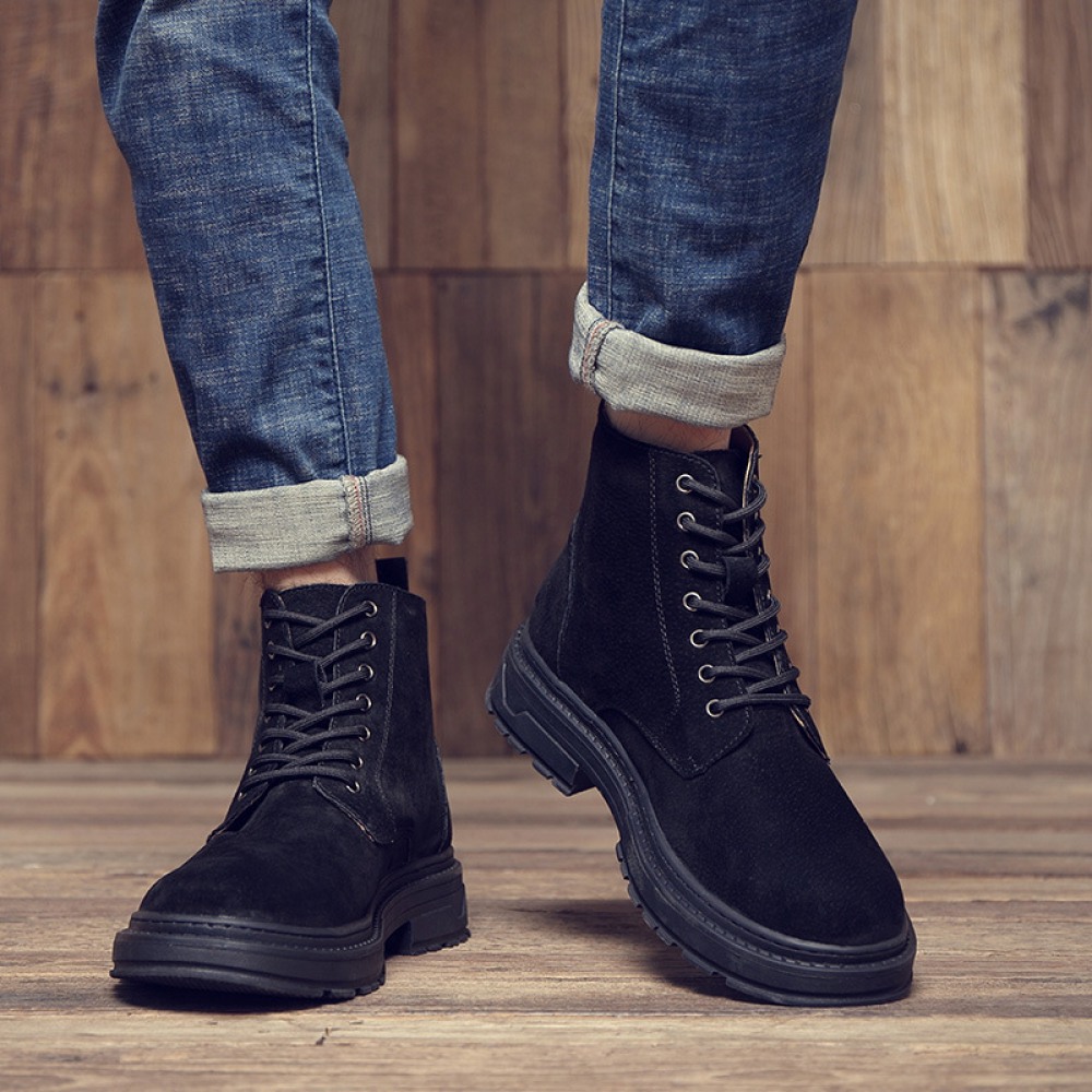Men's Trend Cow Suede Leather Martin Boots Low-Cut Tooling Casual Short Boots