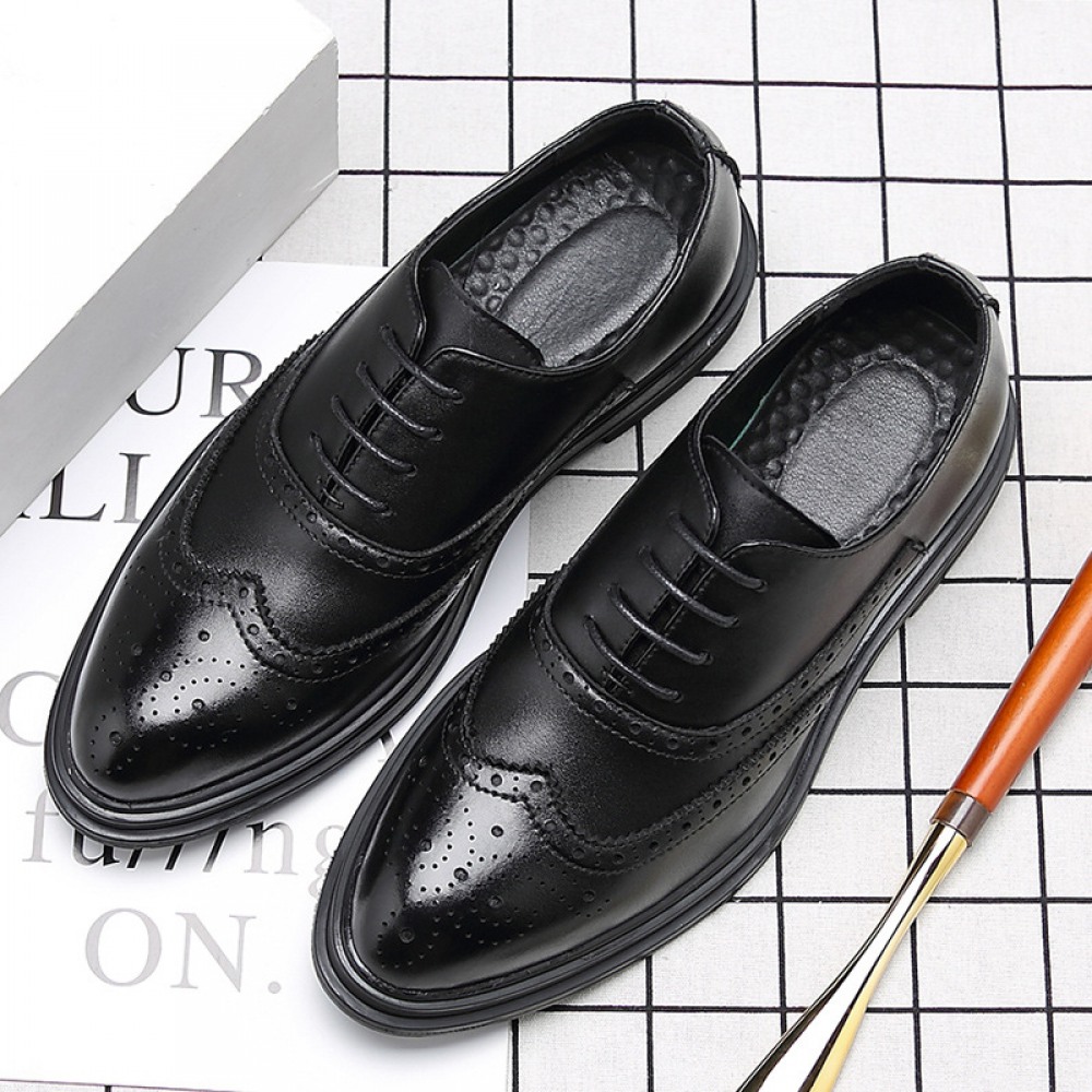 Men's British Trendy Casual Business Shoes Pointed Black Small Leather Shoes