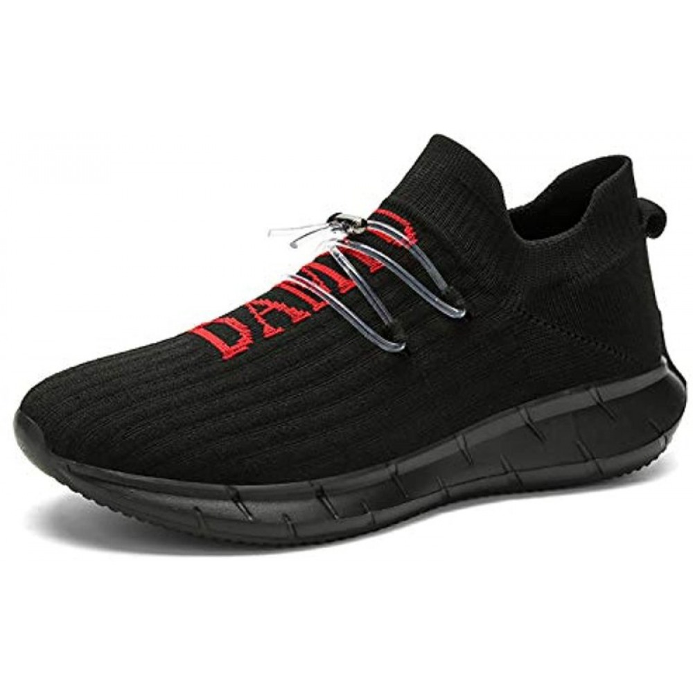Men's Running Shoes Breathable Knit Slip On Sneakers Lightweight Athletic Casual Shoes Black