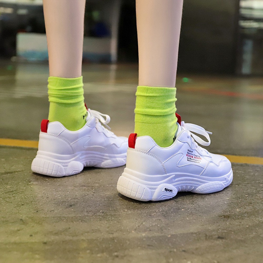Spring and Summer New Basic White Breathable Flat Running Board Shoes