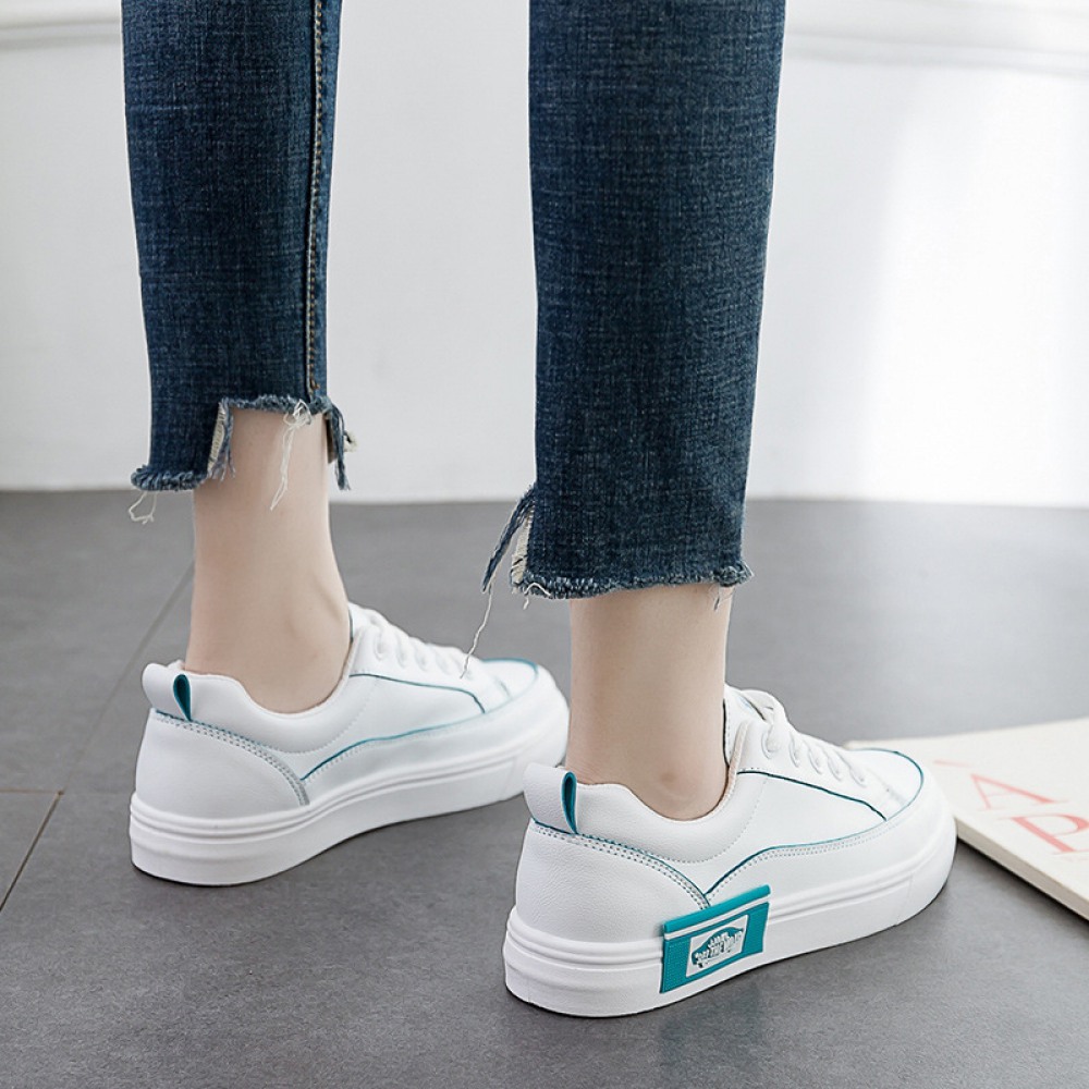 White Breathable Running Board Shoes Flat Lace-Up Shoes
