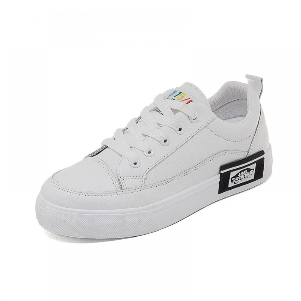 White Women Breathable Leather Thick-Soled Casual Shoes Sports Running Shoes